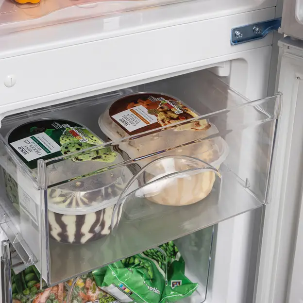 With a 213-litre capacity and a 70/30 split, it prioritises fridge space for your fresh food, offering 142 litres across adjustable glass shelves, a salad crisper drawer, and door balconies for bottles and jars. The 71-litre freezer compartment provides reliable frozen storage with three drawers and a 4-star rating, making it suitable for long-term freezing.