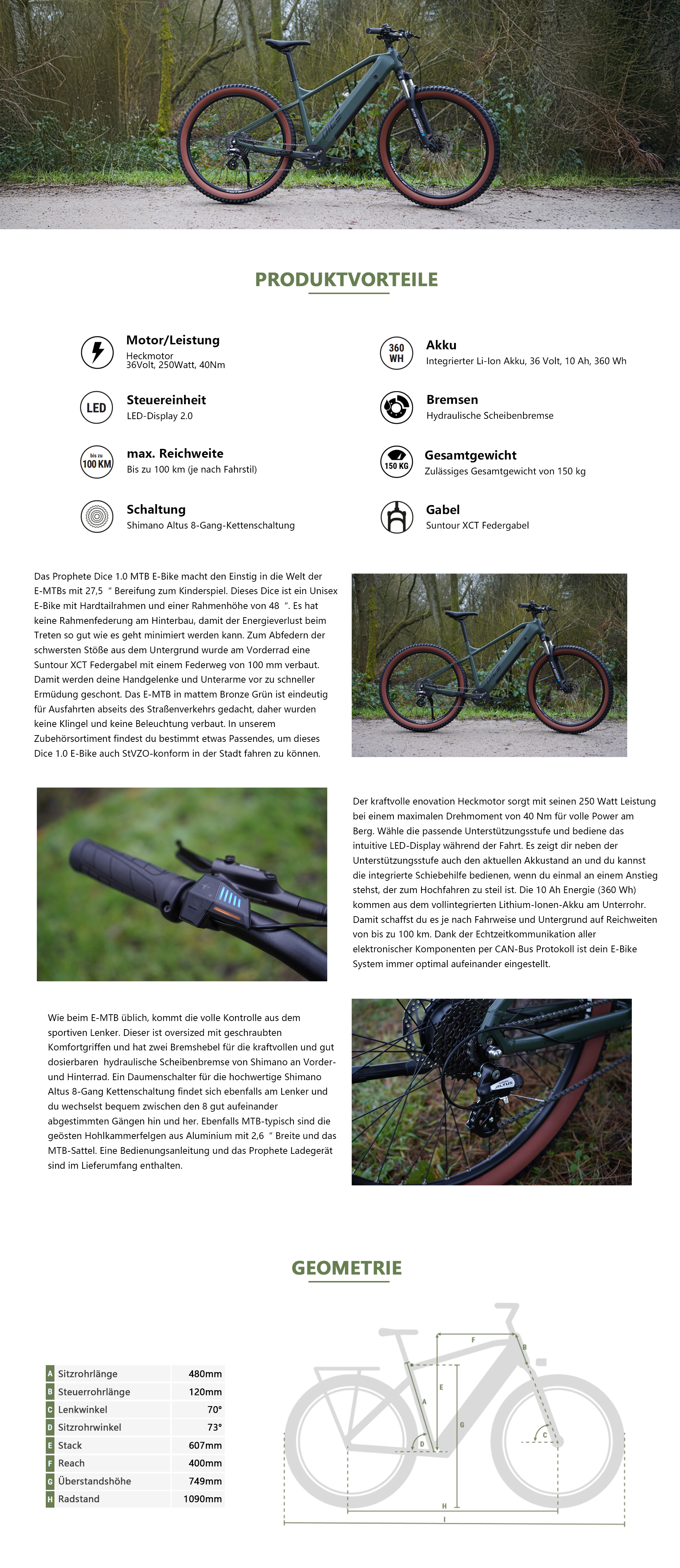 Prophete E-Bike DICE 1.0, Heckmotor, Rahmenhöhe 48 cm