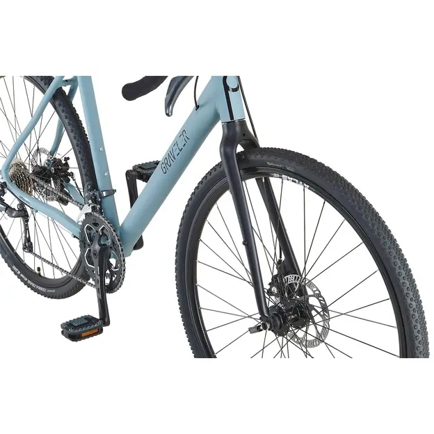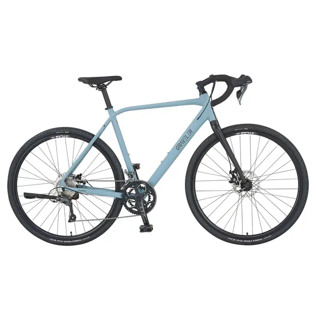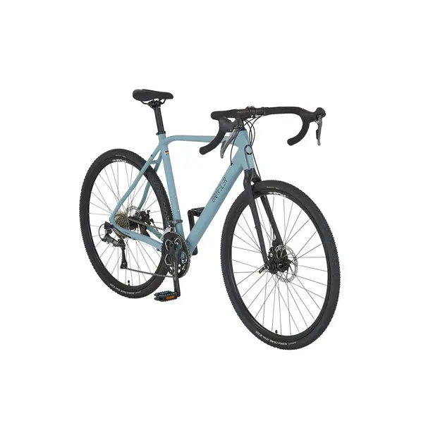 Das Prophete GravelerFit 28″ Gravelbike in Mattgrau kombiniert die Fahreigenschaften eines Trekkingrads mit denen eines Rennrads. Der Gravelrahmen mit einer Rahmenhöhe von 55 cm und hoher Steifigkeit sorgt für optimale Kraftübertragung. Die Continental Terra Trail Reifen mit Kenda Schlauch bieten Fahrspaß auf jedem Untergrund, während die Shimano Claris 16-Gang Kettenschaltung eine reibungslose Fahrt ermöglicht. Tektro mechanische Scheibenbremsen garantieren präzise Bremsvorgänge. Der Prophete Race Bar Gravel-Lenker mit griffigem Lenkerband bietet Komfort und Kontrolle. Der helle Alu-Rahmen kombiniert mit einer schwarzen, starren Gabel verleiht dem Rad einen modernen Look. Anpassungen am Aluminium A-Head Vorbau und am Selle Royal Unisex Sattel machen das Rad vielseitig einstellbar. Ein Ursus Hinterbauständer vervollständigt das Fahrrad.